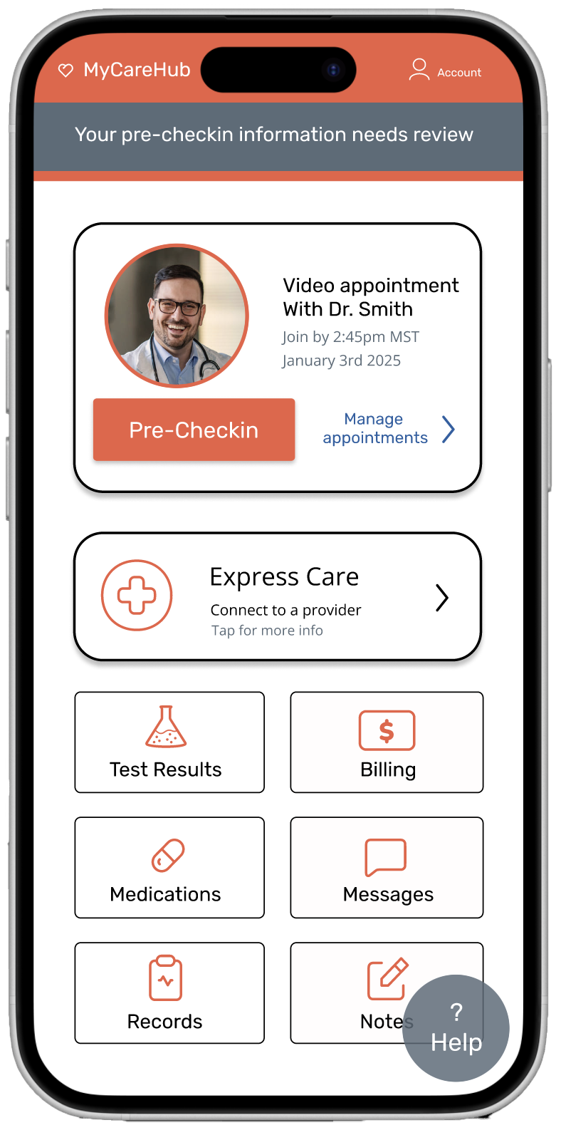 2. Visually differentiate visit types. Show cost + response time upfront in the Express Care flow.